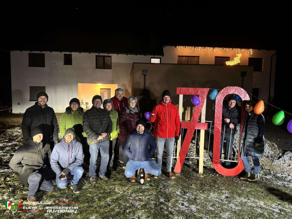 Als kleine Aufmerksamkeit stellte ihm eine Abordnung unserer Feuerwehr den "FF-70er" auf, und verbrachte einige gemütliche Stunden mit dem Jubilar.