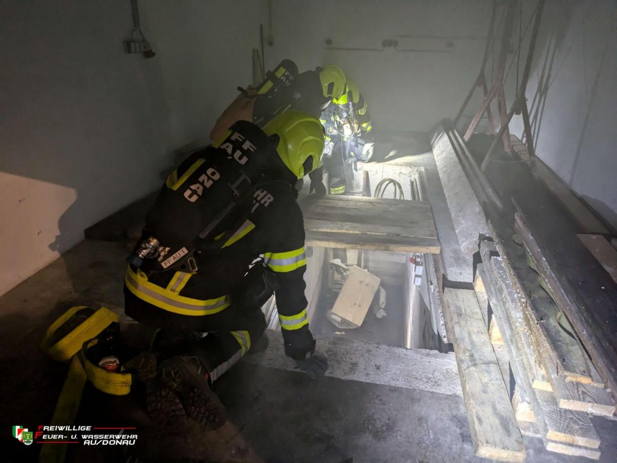 Bei der Lageerkundung durch den Einsatzleiter wurde dieser bereits vom Eigentümer empfangen, und mit kleinen Details zum Objekt versorgt. Im Zuge der Lageerkundung und der Umrundung des Gebäudes stellte sich heraus, dass eine Person im 1.OG vom Rauch eingeschlossen war. Umgehend wurde die Mannschaft des ULF-Naarn damit beauftragt, diese mittels Leiter zu retten. Zeitgleich ging ein AS-Trupp unserer Wehr mittels HD-Rohr des ULF-Naarn in den Brandraum vor, um eine weitere Person zu retten. Die Wasserversorgung für das ULF stellten unsere Kameraden vom nahegelegenen Löschbrunnen her. Auch die Kameraden aus Holzleiten verlegten vom Löschbrunnen eine Zubringerleitung, und starteten einen Außenangriff. Auch von der in etwa 250m entfernten Aist wurde mittels LFA-B der FF-Naarn eine Zubringerleitung zur Brandbekämpfung im Außenangriff verlegt. Nachdem unser Atemschutztrupp die 2. Person retten konnte, begab sich noch ein AS-Trupp der FF-Naarn in das Übungsobjekt, um Glutnester mittels Wärmebildkamera aufzufinden (dargestellt durch mit warmen Wasser gefüllte Flaschen).