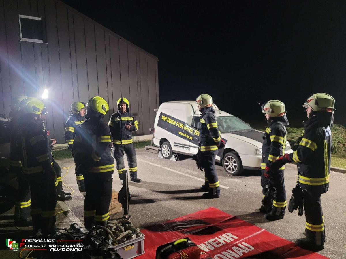 Im ersten Teil galt es, eine unter einem PKW eingeklemmte Person mit den uns zur Verfügung stehenden Mitteln zu befreien. Besondere Acht wurde dabei auf die patientenschonende Vorgehensweise beim Anheben des Fahrzeuges, sowie die achsengerechte Rettung der verunfallten Person gelegt.