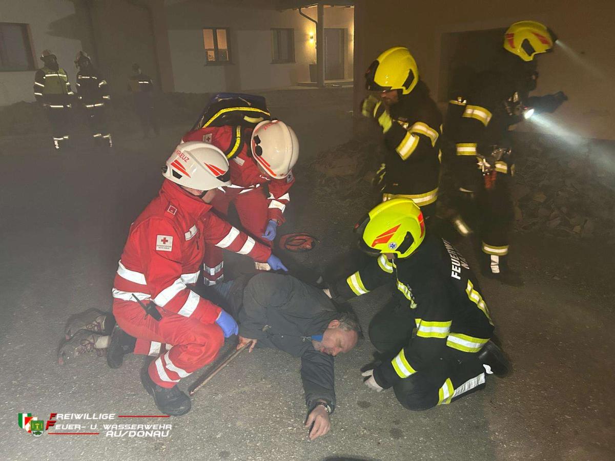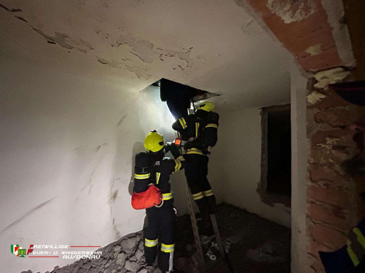 „Ein Zimmer im Kellergeschoß steht in Vollbrand. Der einzige Zugangsweg ist eine schmale Wendeltreppe, die nach unten führt. Beim Öffnen der Kellertür dringt dichter Rauch nach außen, die Flammen sind deutlich zu sehen und haben bereits die Treppe erreicht.“